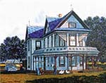 This "Steamboat Gothic" house is in Coleman, Texas and is one of the few in the state. In reality it wasn't in quite as good condition as I've portrayed it, but has been fixed up since the painting was done, To Martha and I this painting is symbolic as we now have our child rearing days behind us and are looking forward to the coming "Golden Years"!