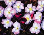 Pink Evening Primrose (Oenothera speciosa, Evening Primrose family) blooms in great profusion in East and Central Texas from March to July and is also called Mexican Primrose, Showy Primrose and Amapola. Wine Cup (Callirhoe digitata, Mallow family) bloom in most parts of Texas except the far west from April to late June and is also called Poppy Mallow and is related to Cotton and Okra.